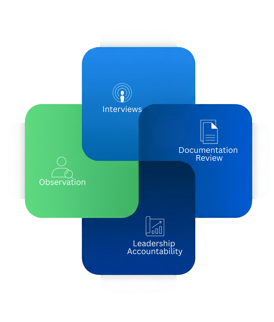 Observation → Interviews → Documentation Review → Leadership Accountability